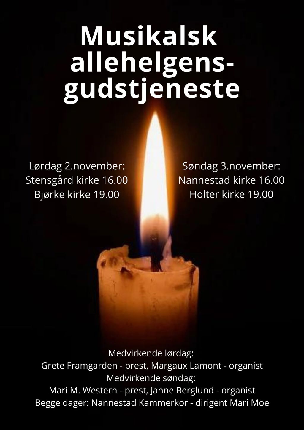 Allehelgen - Kammerkoret deltar i alle kirkene